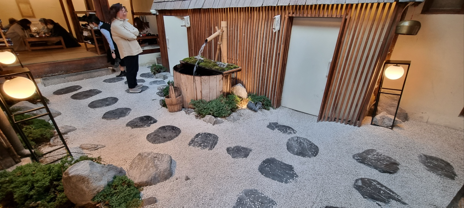 가운데는 포토존으로 이쁜 온천모양의 정원이 있어서 식사가 준비 되기 전에 한번 나가봤어요.