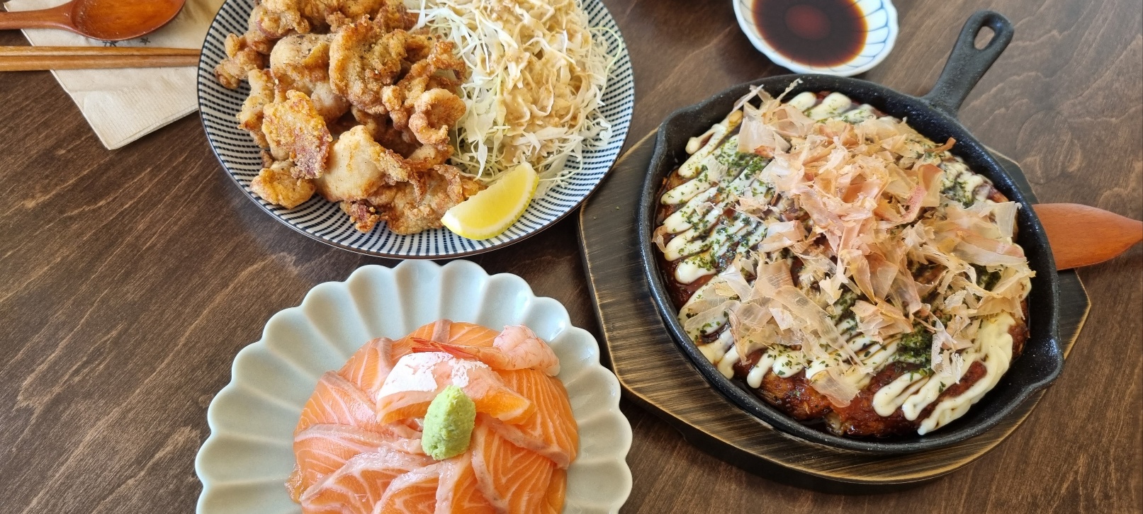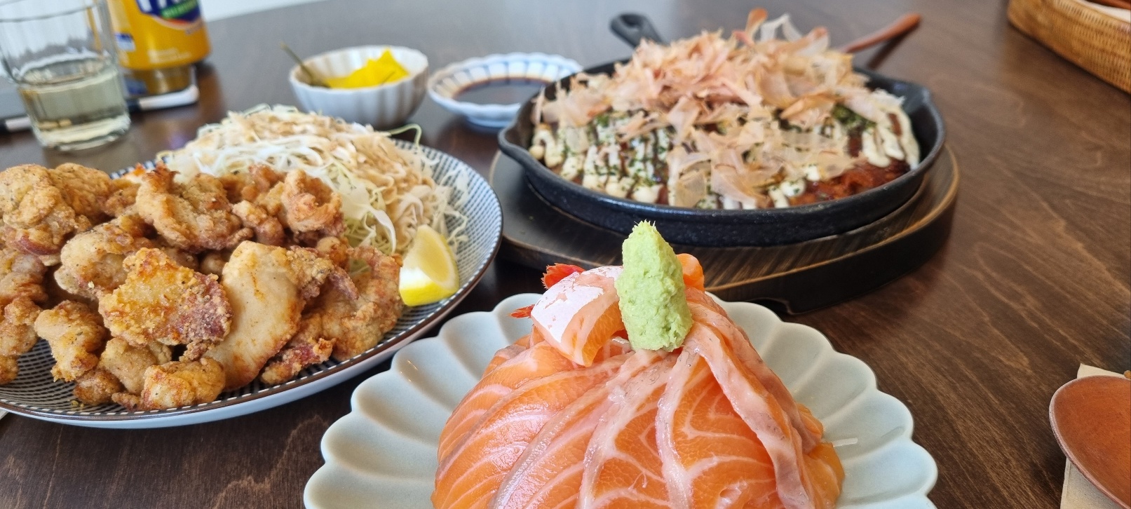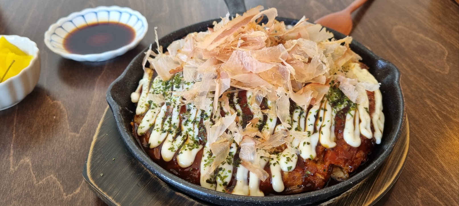 오코노미야끼 : 속에 끈적끈적한 부침개같은 느낌의 음식이에요. 일본 특유의 간장 맛이 있어서 직원분이 밥을 추가로 주셨어요.