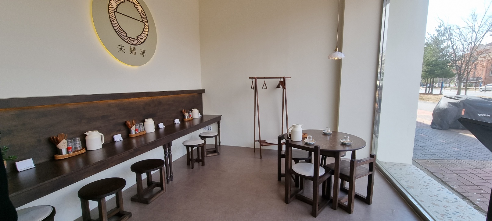 매장은 멀바우톤의 우드와 화이트 톤으로 단정한 느낌입니다.