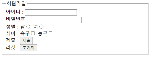 - fieldset : 폼을 그룹으로 묶어줍니다.